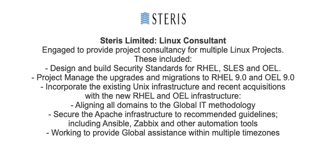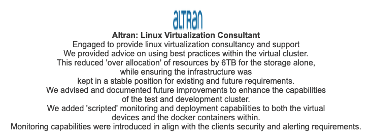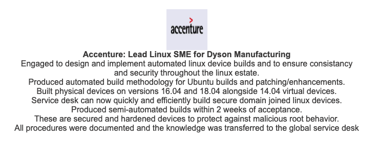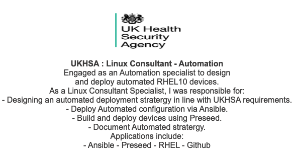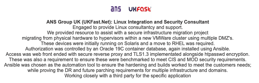 Ken has demonstrated a depth of knowledge and capability in the creation and configuration of the Linux based infrastructure into which a legacy security product has been migrated and modernised. Ken's eye for detail and diligent delivery has been exemplary. Highly recommended where compliance and high levels of assurance are demanded in complex ICT solutions