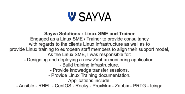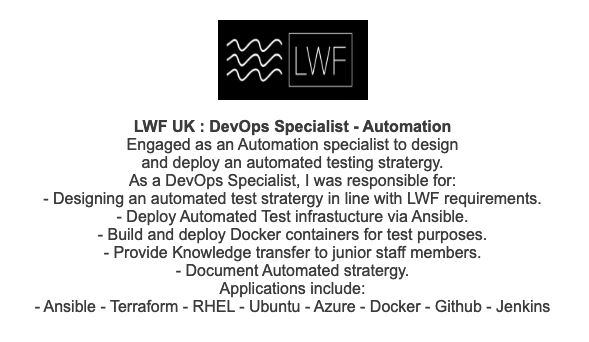 Ken was working with me for 4 months and we were able to take full advantage of his knowledge of infrastructure and network automation. He is an expert in all things Linux and security services related issues such as network segmentation and sheep dip automation. I Would recommend him for any services on IAC Automation or OS build automation especially Ansible.
